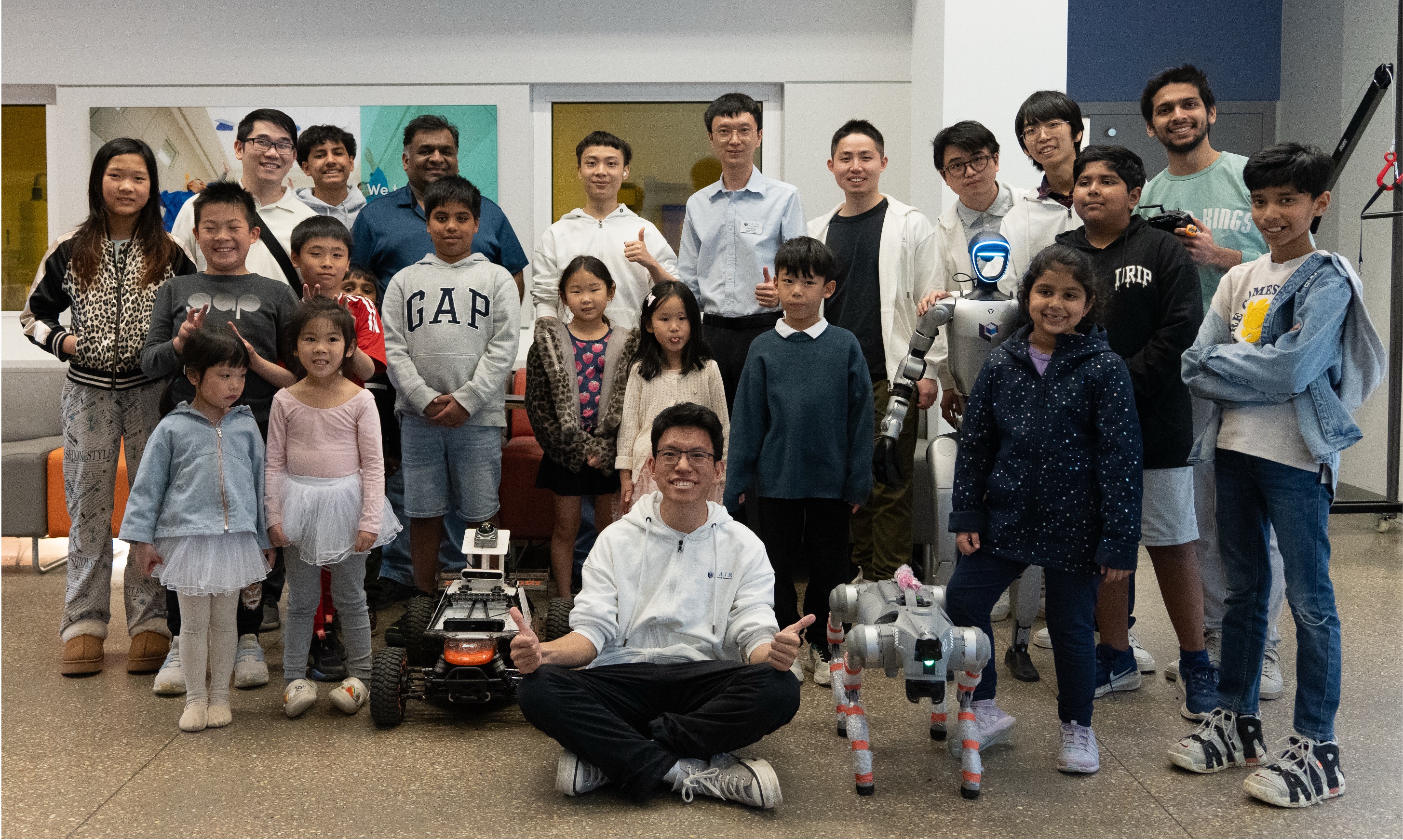 Throughout the day, visitors explored live demos of cutting-edge robots, including humanoid robots (Bruce and Gideon), quadruped robots (Nova), and wheeled robots (Rover and Racer), all powered by advanced AI techniques developed in the lab. Participants had hands-on experiences with robot navigation, real-time vision processing, and human-robot interaction systems.