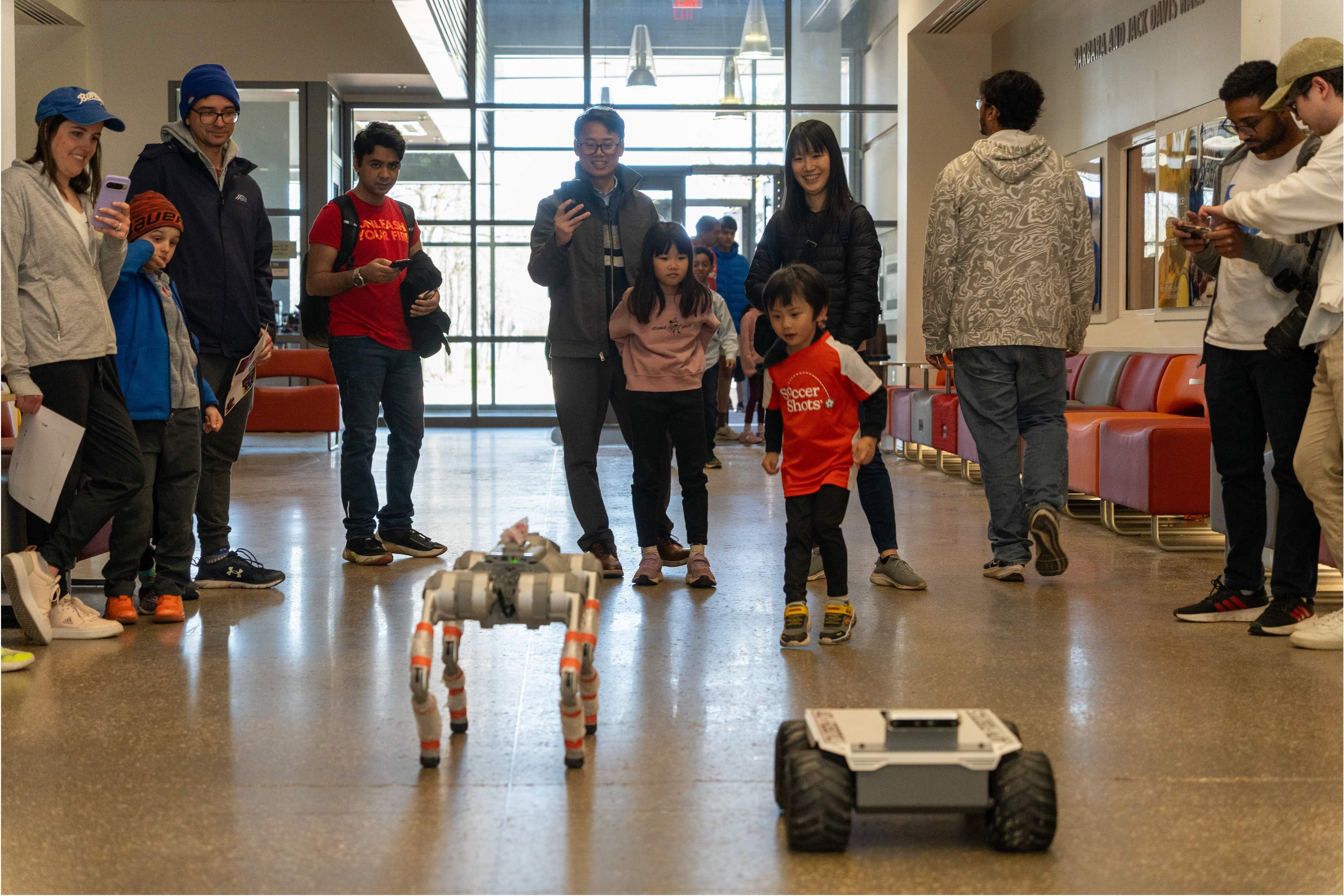 Faculty, graduate students, and undergraduate researchers from SAIR Lab guided tours and presented interactive exhibits to showcase how robotics research can transform the future of transportation, healthcare, and space exploration. The event also featured a student poster session, Q&A panels with researchers, and interactive games where children could interact with robots using voice commands and gestures.